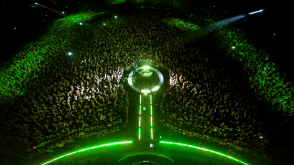Il suffit de regarder les trois actes de la tournée à travers la montée en puissance de la mise en scène et des artifices, ces ellipses du logo de la tournée ou bien la fameuse tridimensionnalité des concerts.